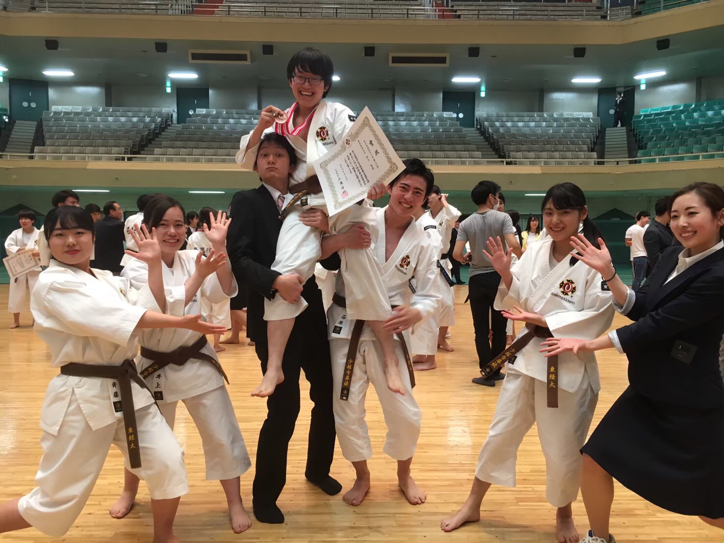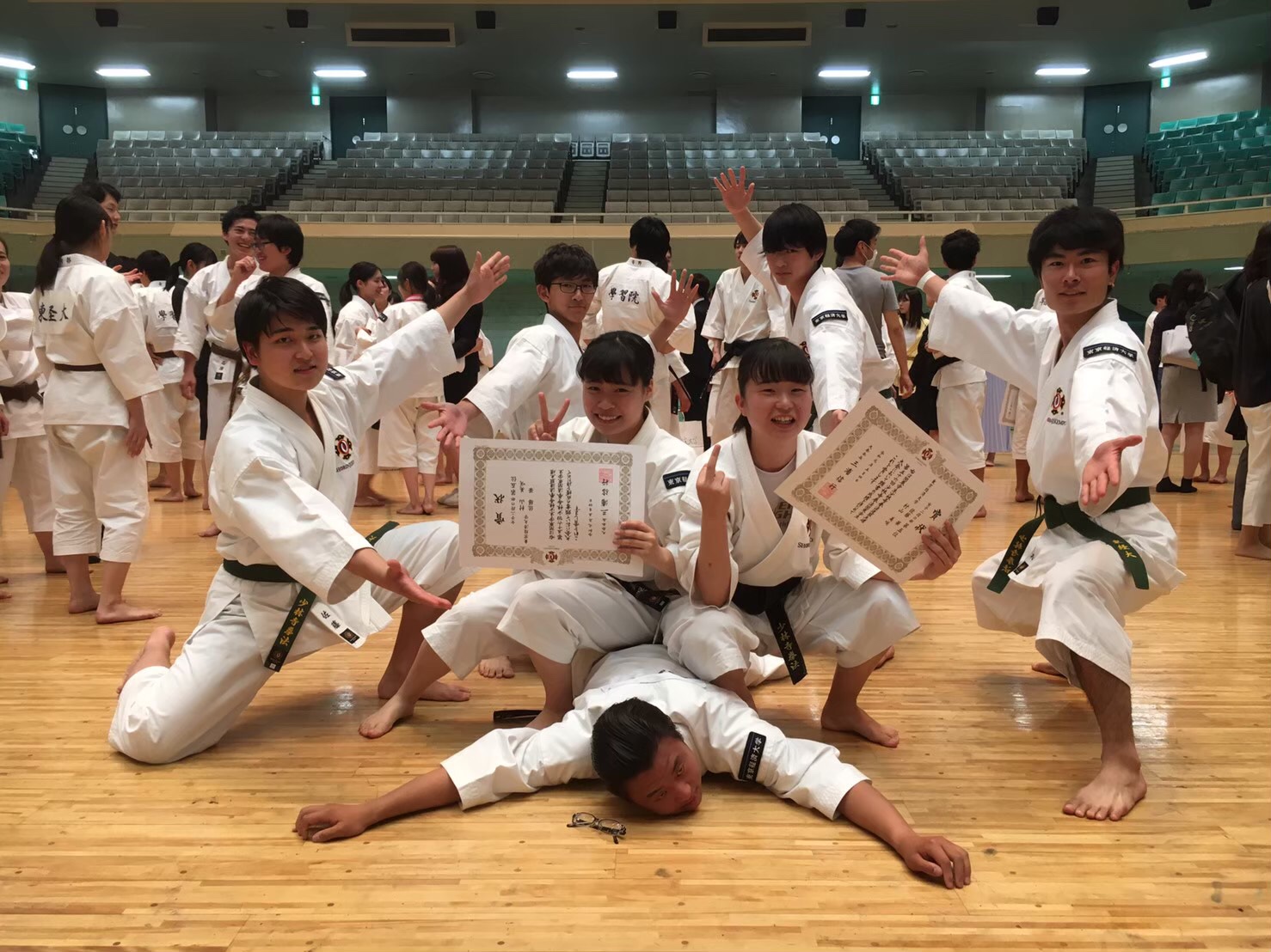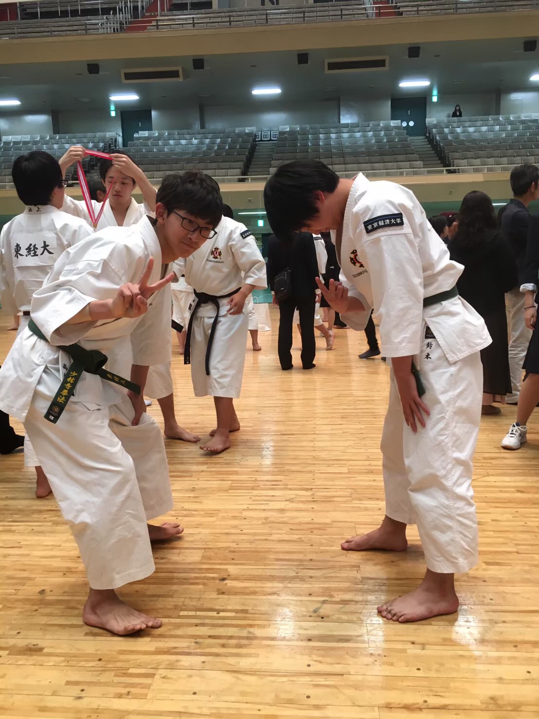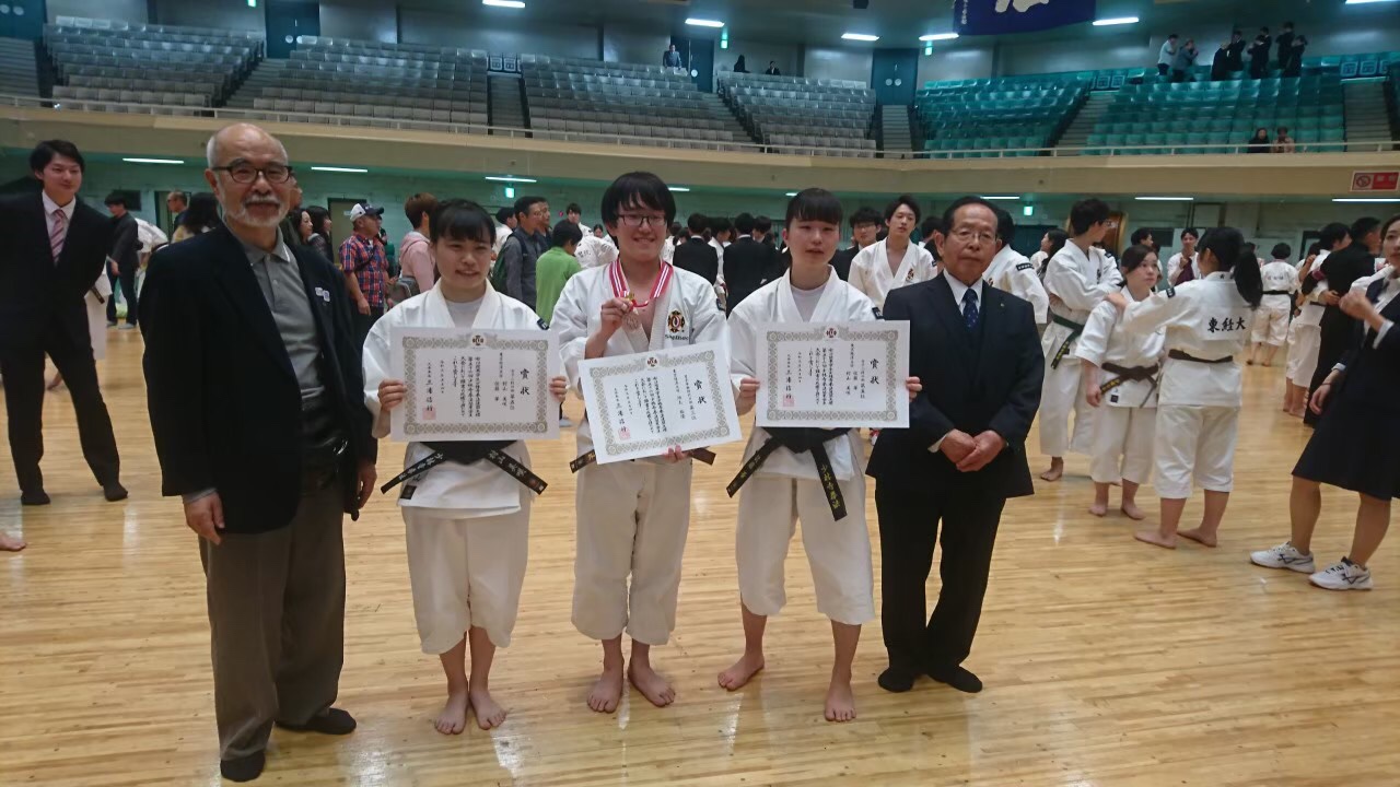 日頃の練習の成果を十分に発揮できたのではないのでしょうか!?阿部・石原組は初めて組んだながら、普段の仲の良さと信頼関係を十分に演武に応用して今回の結果に結びつけたのではないかと思います。そして、池上先輩本当におめでとうございます!1、2年で積み上げてきた基礎がようやく花開いたのではないかと思います。次は全日本でも頑張ってください!