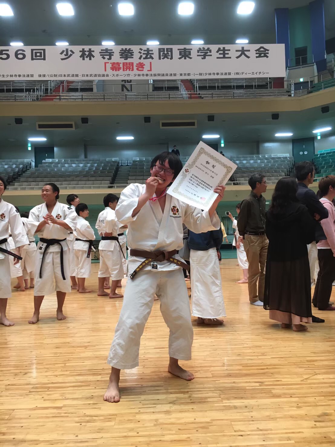 今回の東経大少林寺拳法部で最年少の集まりでしたね(笑)しかしながら、5名が本選に出場。2名が入賞するなど、最下級生でここまでの活躍をするのは凄い事なのではないのでしょうか。先輩達も安心できたのではないのでしょうか?