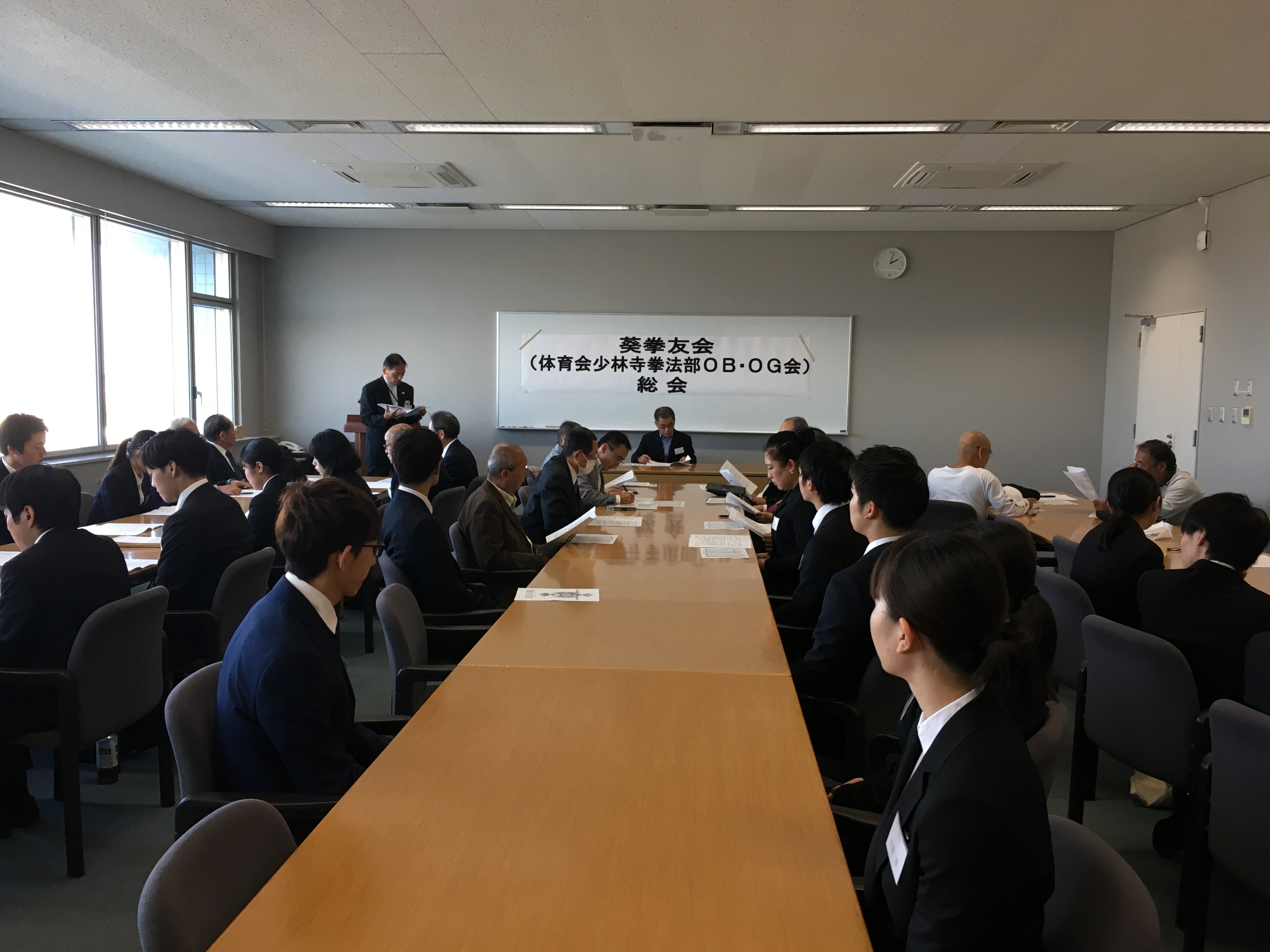 東京経済大学国分寺キャンパス6号館第3会議室で東京経済大学少林寺拳法部OB総会が行われました。1年間の収支報告・その他さまざまな支援の報告とその御礼・現役からの1年間の大会・昇級・昇段・合宿などの活動報告をしました。議長には池田先輩が、司会には長尾幹事長が就いてくださいました。誠にありがとうございます。