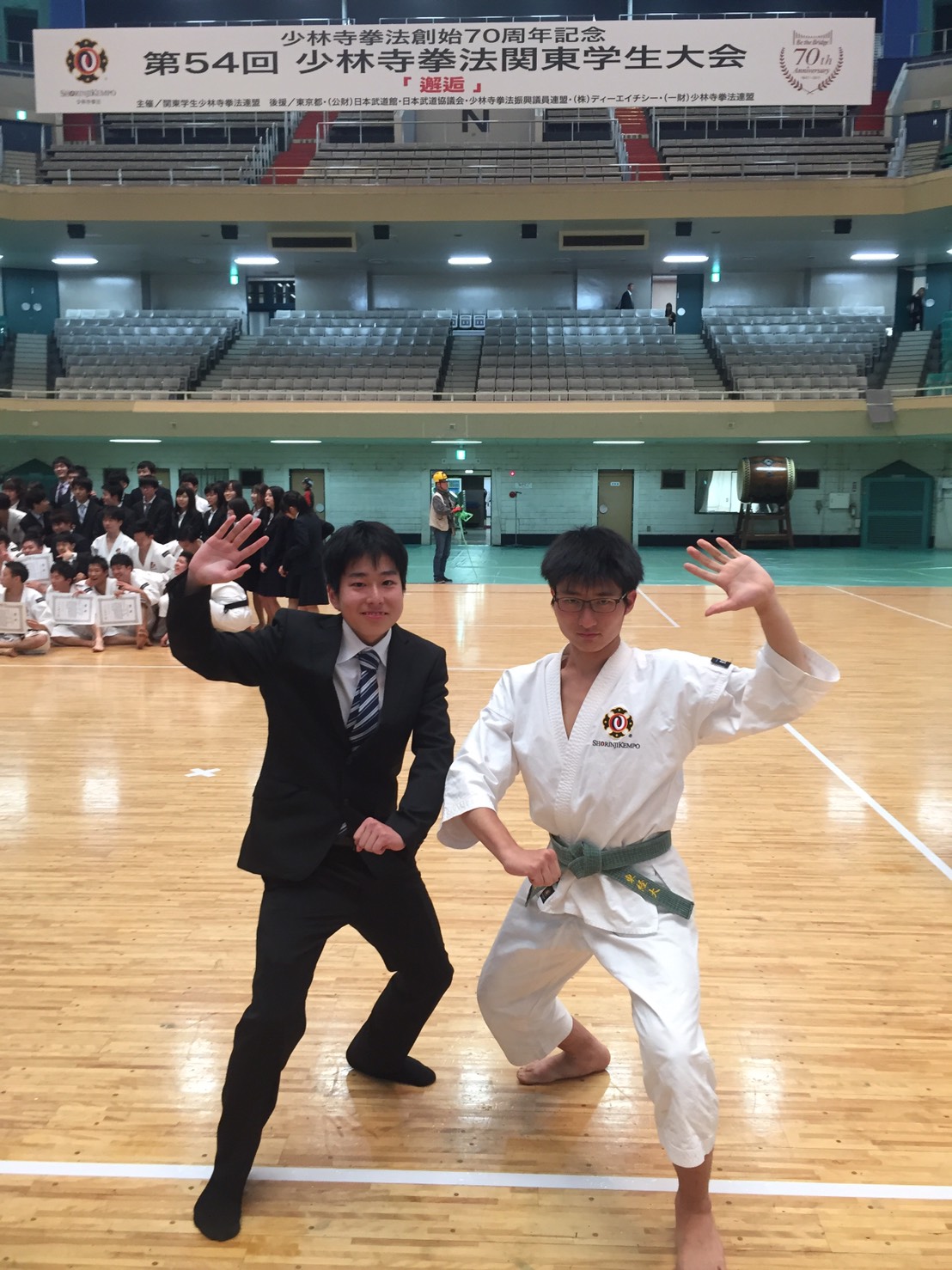関東学生大会 投稿日: 2017年5月10日2017年5月10日 tku-shorinjikempo 5月4日日本武道館で関東学生大会が行われ、東京経済大学からは単独演武1名、組演武6組が参加しました。 新入生歓迎会や授業などがあり限られた時間の中で1人1人全力を出して演武を疲労しました。 どの演武も迫力のあるものでした 今回の大会結果ですが3年吉野が入賞しました 他の拳士は入賞することはできませんでしたが素晴らしい演武だったと思います。 みなさん本当にお疲れ様でした!! 1年生も朝早くありがとうございます