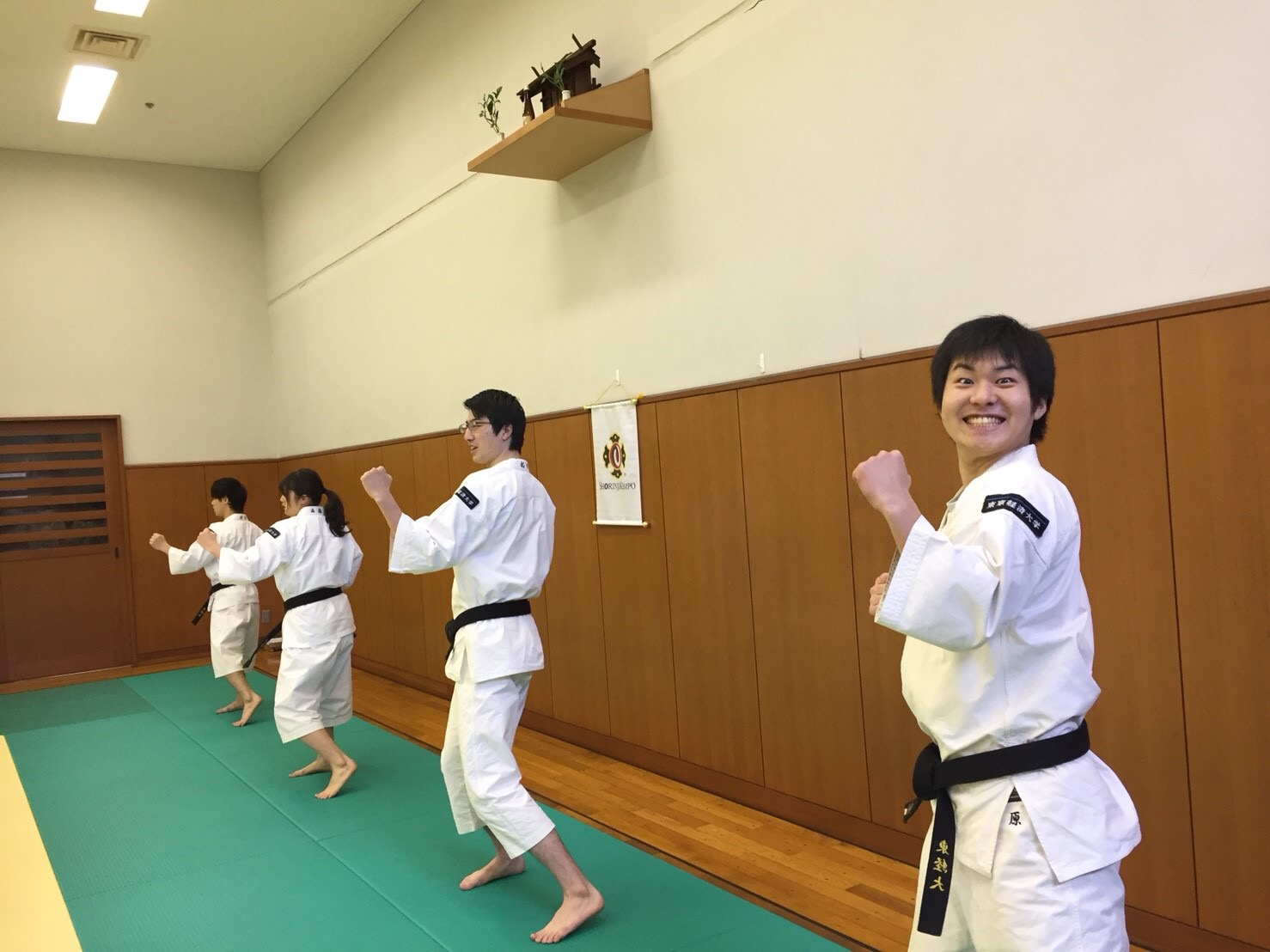 追い出しコンパ1 投稿日: 2018年7月4日 tku-shorinjikempo 3/10に追い出しコンパを行いました。 4年生の先輩方による最後の練習です!悲しいです… こちらは全てカメラ目線のものです。真面目にやってください笑笑 さて基本・移動も終わり運用法に移ります。 あれ?またカメラ目線……… 運用法が始まりましたが、4年生の圧勝でした笑笑 それぞれ運用法を行いましたが、みんな良い笑顔ですね! 最後に岸田が渡辺先輩とやりました笑 この後は食事会に移ります。
