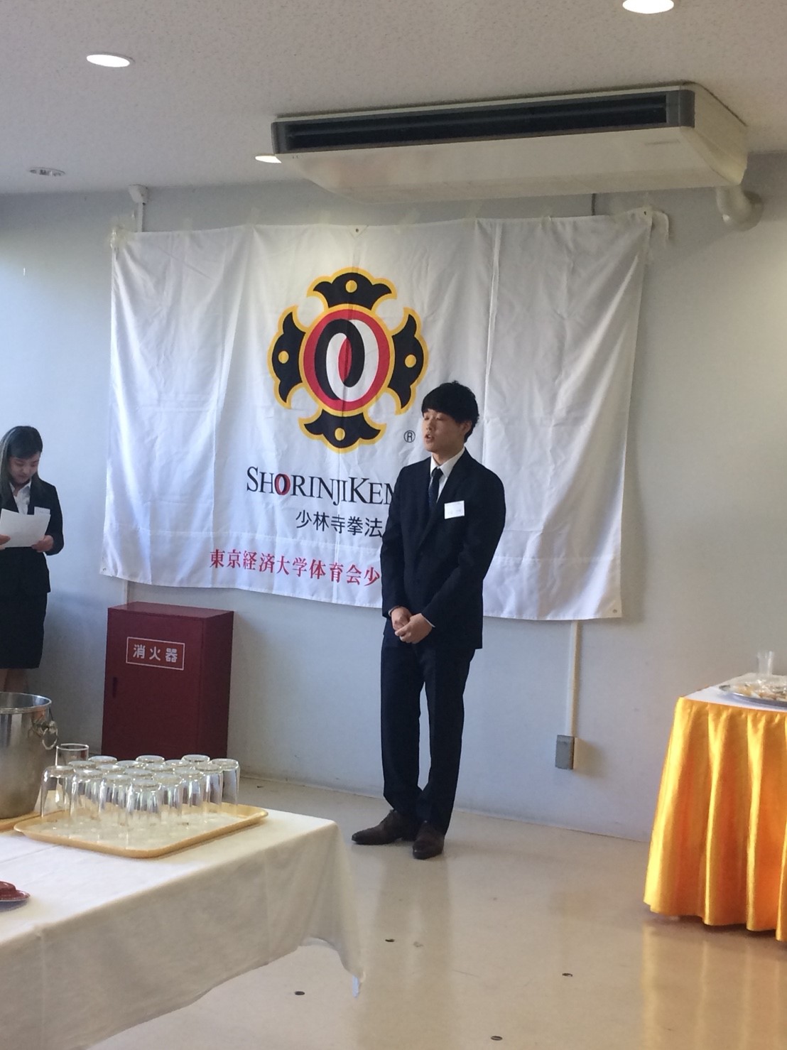 挨拶する旧主将 吉野先輩 約一年間お疲れ様です。